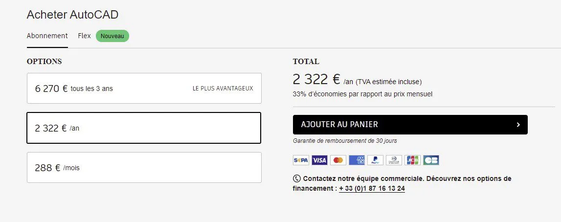 Pour obtenir une licence d’AutoCAD, il faudra débourser pas moins de 2322 € TTC pour un abonnement d’un an.